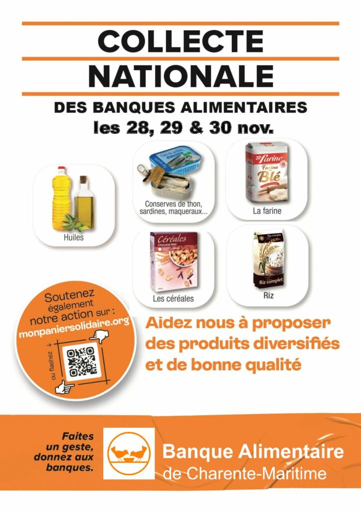Collecte banques alimentaires 2025Par Matthieu MORIZOT / 28 octobre 2025 Retrouvez ici toutes les informations sur la collecte 2025, ou pour devenir bénévole. Facebook Twitter LinkedIn Email Imprimer