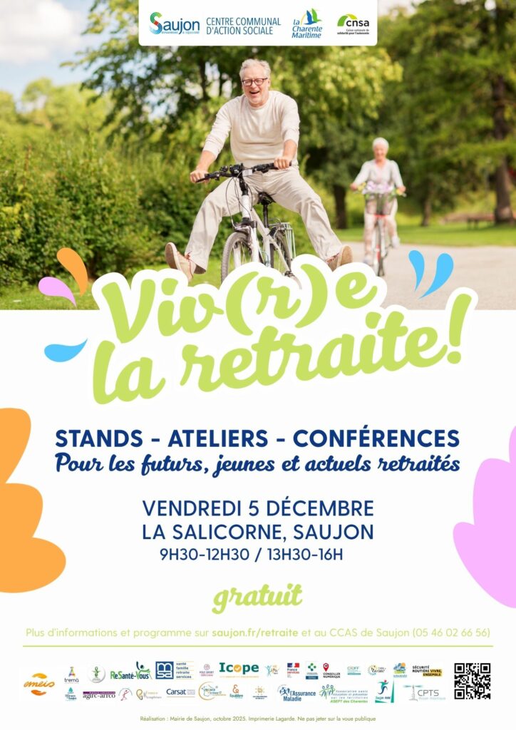 Entrée libre et gratuite. Programme détaillé disponible sur la page saujon.fr/retraite, inscriptions aux ateliers au 05 46 02 66 56.